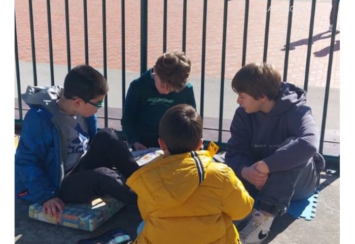 Aprovechando que ha salido el sol hemos tenido nuestro rato de lectura en el patio.