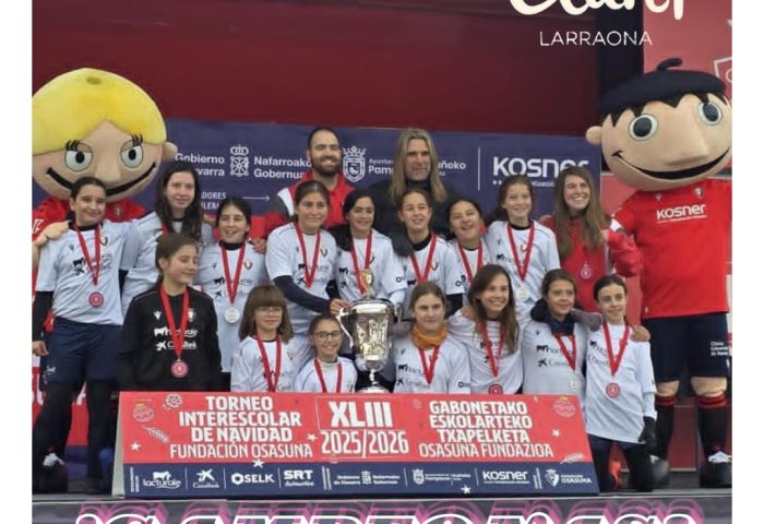 El equipo femenino que ha representado al Colegio Claret Larraona en el Torneo Interescolar de Navidad Fundación Osasuna, se ha proclamado campeón. Han vencido en la final al Colegio San Miguel de Noáin al cual felicitamos por ser un gran rival.